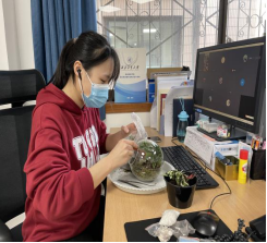 一花一世界,一草一天堂,视觉与颜色的完美融合,创意与制作间收获欢乐。伟德BV1946官网工会邀请了专业老师为大家线上讲解了操作步骤,在老师的远程帮助下,按步骤将绿植、多肉、砂石等物品一一放入到容器内,不断调整,最后定格成作品。