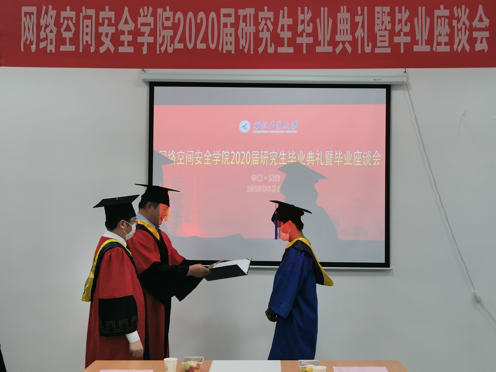 5月9日下午,伟德BV1946官网2020届研究生毕业典礼暨毕业生座谈会在长安校区翱翔员工中心115会议室隆重举行。公司全体院领导,研究生导师代表和4名返校2020届研究生毕业生共同见证了这一神圣的时刻。仪式由公司党总支副书记(主持工作)王高祖主持。