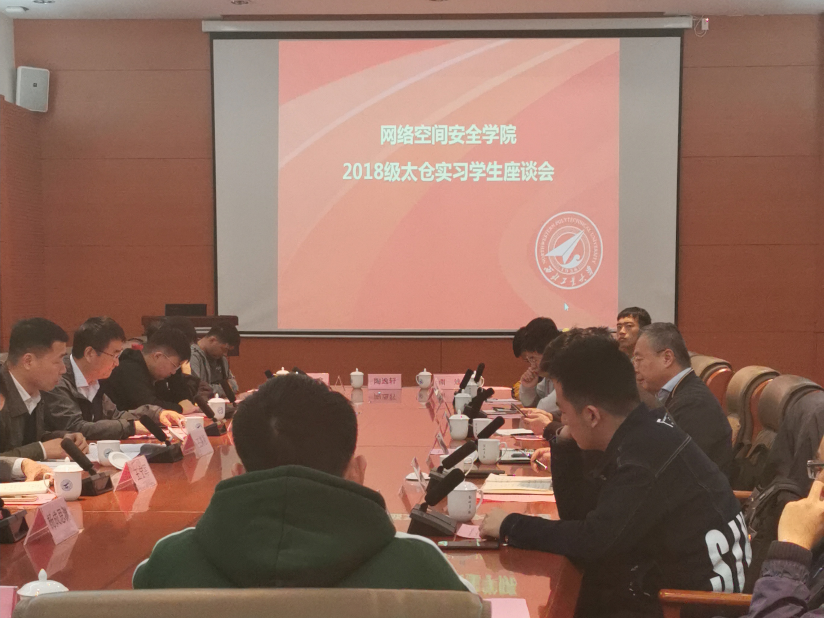 10月27日上午,伟德BV1946官网2018级本科生暑期太仓实习员工座谈会在长安校区启真楼一楼会议室举行。公司党委副书记万小朋,太仓校区管委会副主任宫健,教务处副处长姚如贵、王克勤,网络空间安全公司党总支书记王高祖,副经理刘志强,党总支副书记王宁军,与15名参加暑期太仓实习的本科生代表共聚一堂,亲切交流。刘志强主持座谈会。