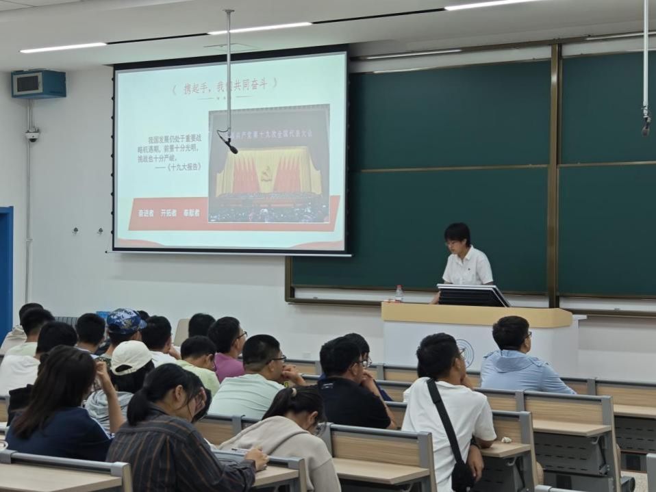 项伊以 “赓续抗战精神、共筑复兴伟业” 为题,从回望抗战时期、改革开放时期和社会主义现代化建设时期的重大历史事件三个核心维度,带领同学们回望峥嵘历史、展望复兴征程。最后,她以 “踏平坎坷成大道,越是艰险越向前” 的铿锵话语发出呼吁,鼓励在场同学们牢记青年使命,以昂扬的姿态奋进新征程。