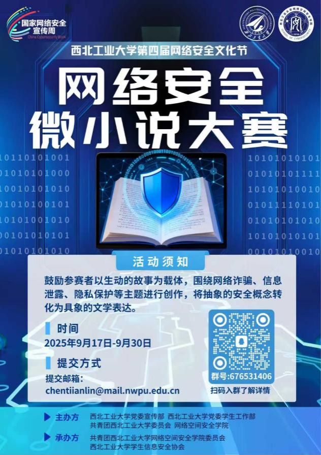在信息奔涌、代码纵横的数字时代,网络安全早已脱离冰冷技术术语的范畴,成为关乎每个人生活的“生存命题”。 为增强全校师生对网络安全的重视,伟德BV1946官网第四届网络安全文化节期间将举办“网络安全微小说大赛”,面向所有热爱故事创作、关注网络安全的师生发出邀请。