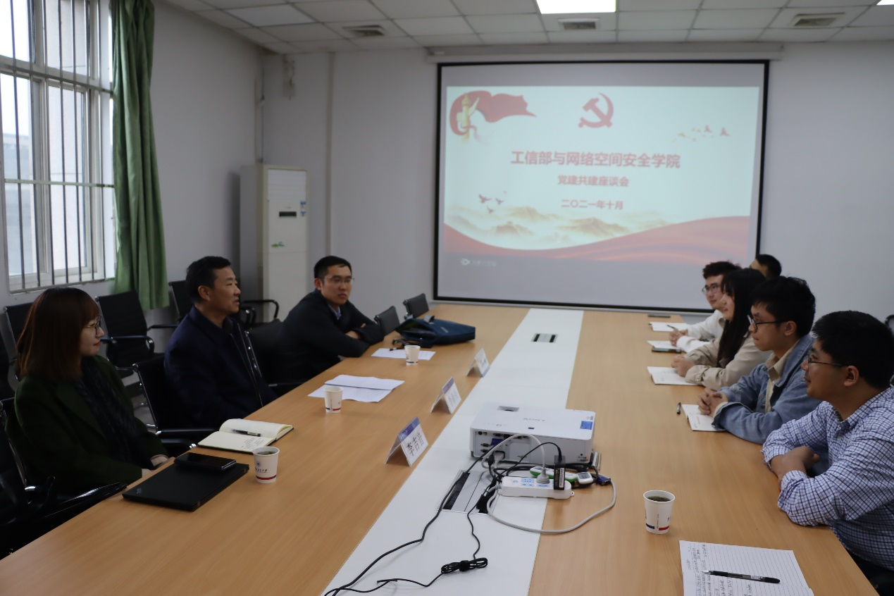 下午,李新社副主任一行与伟德BV1946官网师生党支部书记进行了以“工信部与网络空间安全公司党建共建座谈会”为题进行了座谈交流,会议紧紧围绕“没有网络安全就没有国家安全”这个主题主线,紧密结合“提高政治站位是推动网络安全产业高质量发展的根本前提;强化思想认识为网络安全产业高质量发展提供基本遵循;加强人才培养是推动网络安全产业高质量发展的有力支撑;推动专精特新中小企业发展是推动网络安全产业高质量发展的重要途径”四个方面进行了交流,从日常生活、工作学习、国家需求等方面不断强化网络安全的重要性,从人才培养的方向、基础产业链、产业需求不断强化思想认识,不断提高网络安全意识。