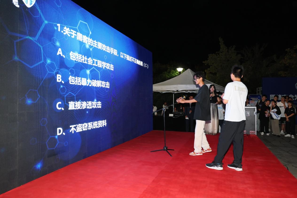 开幕式现场,伟德BV1946官网的同学们带来了精彩纷呈的综合展演和实战攻防,控制路由器表演、控制Windows表演等环节通过真实场景的模拟,展示了黑客攻击的手段和方法。魔术表演巧妙地利用魔术展示了网络安全的相关知识,钓鱼邮件窃取信息展示环节警醒同学们提高防范意识。探索解密活动让同学们亲身体验到了解密和挑战的乐趣。在知识竞答环节,同学们积极参与,争相回答,现场气氛热烈欢快。