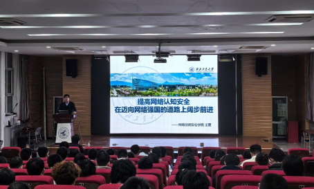 王震指出,认知是人脑对客观世界的主观碰撞过程,并结合网络安全专业知识,具体阐释了认知、认知安全、认知战等关键名词,深入浅出地带领全体师生用专业知识理解时代所需、国家所需,并激励广大网安学子要坚定不移听党话、跟党走,守好祖国的第五疆域。