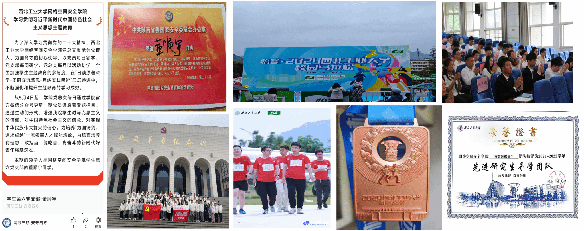 作为一名中共党员,董顺宇始终保持高度的社会责任感,积极参与各类党建和社会实践活动。在研究生期间,他积极参与党组织生活,认真学习党的理论知识,并以实际行动践行党员的先锋模范作用。多次参与公司及社会的志愿活动,发挥专业优势,为社会贡献自己的力量。除科研之外,他也关注个人综合素养的提升,积极参加体育、演讲、科创等活动,不断挑战自我,实现全面发展。