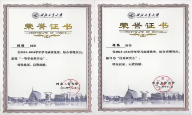 在伟德BV1946官网攻读研究生期间,始终保持优异的学业成绩,成绩稳居专业前10%,获评伟德BV1946官网“优秀研究生”荣誉称号,并获校级奖学金。
