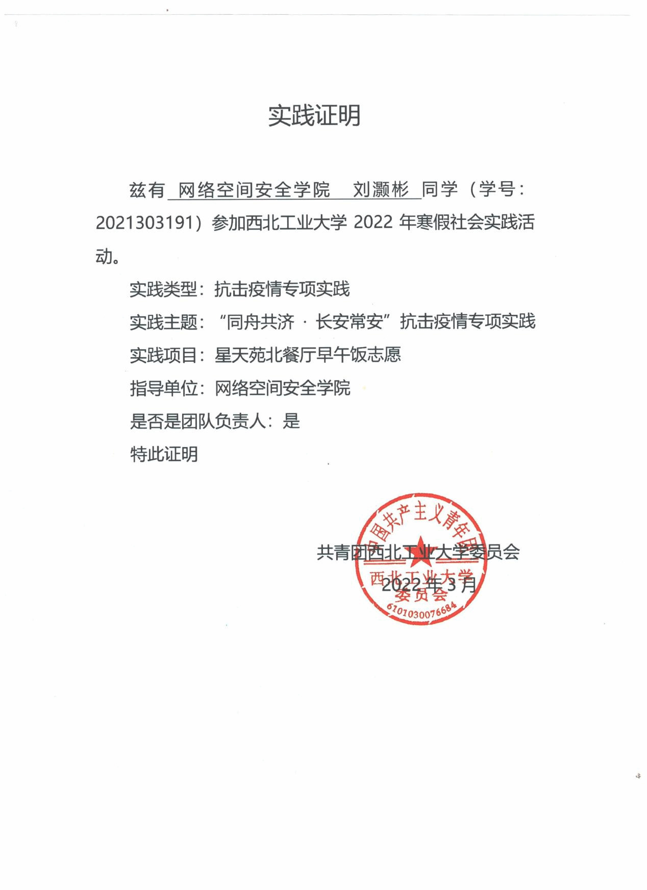除学习之外还参与乒乓球、棋类、拔河等多项体育项目,获第二届全国老员工象棋锦标赛二等奖、陕西省老员工棋类交流赛三等奖等。积极参与社会实践,参与2023暑期广州社会实践,参与疫情防控、“灿烂千阳”线上支教、“安守四方”反诈公开课等实践活动累计志愿时长超200小时。