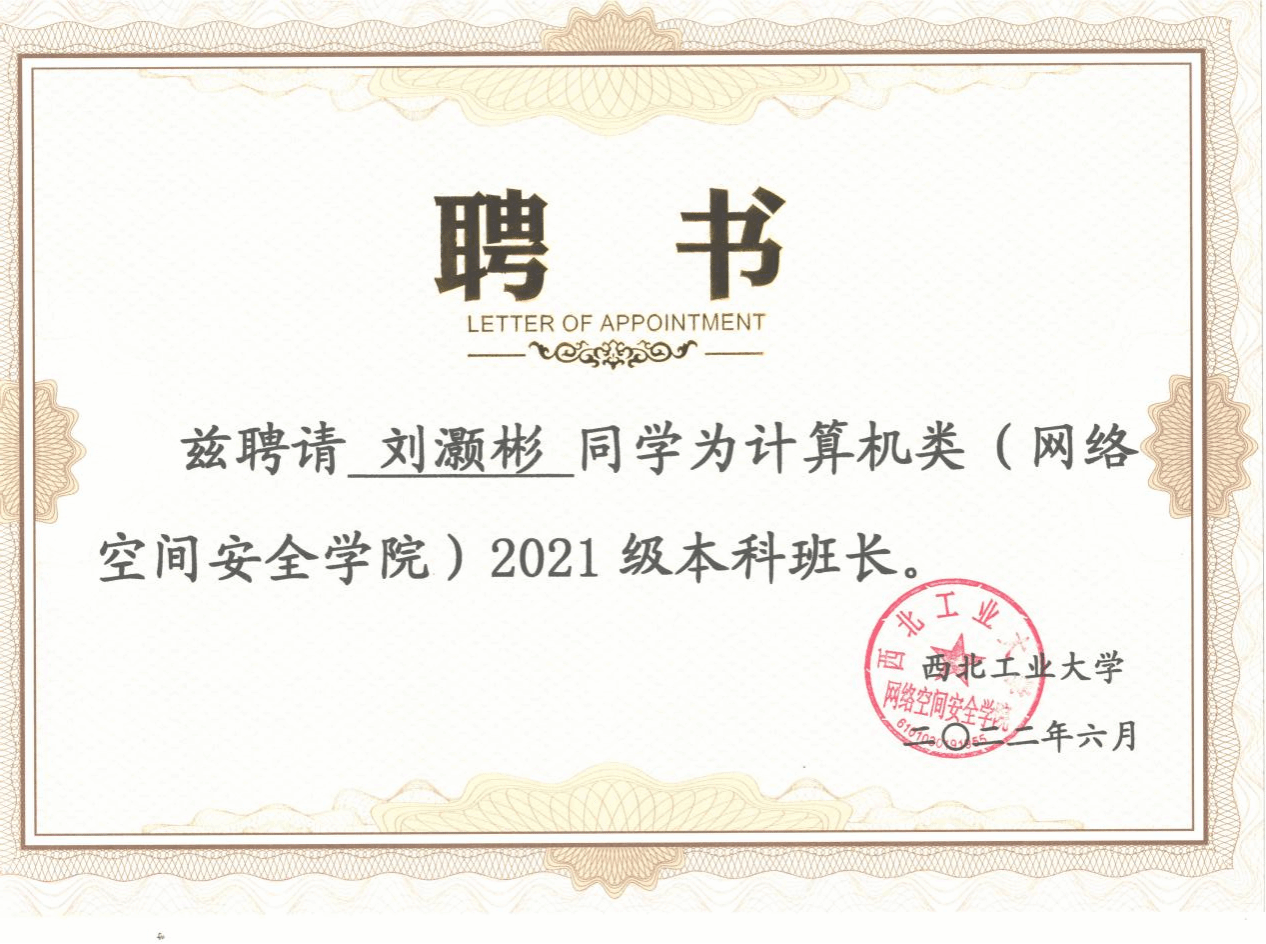 刘灏彬,伟德BV1946官网信息安全专业2021级本科生,中共党员,本科期间综测成绩排名专业第三,保研至伟德BV1946官网。曾任伟德BV1946官网团委副书记、2021级大班长、员工棋类协会会长等职务,曾获校二等奖学金,优秀毕业生、优秀老员工、优秀共青团员、优秀班干部等荣誉称号。