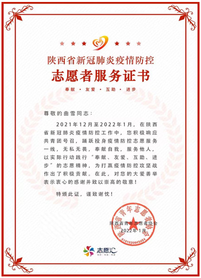 “我们的所见所悟,都是构成生活影片的一帧帧精彩瞬间。”曲雪说。研究生三年,她积极参加公司公司各项文体、社会实践与志愿者活动,多次获评院校级“优秀志愿者”,努力充实每个日子,在实践中淬炼美好青春。同时,她组织开展了师生座谈、职业规划帮扶、羽毛球赛等等系列活动,搭建了一个朋辈交流互动、共同成长的平台,为校园文化发展增砖添瓦。