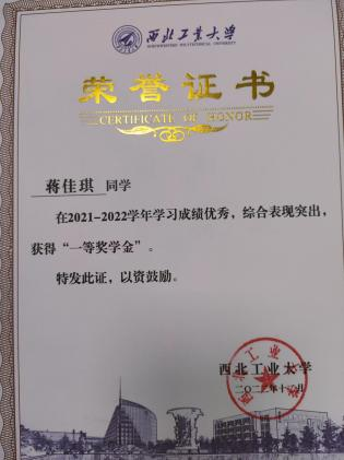 2022年校级一等奖学金