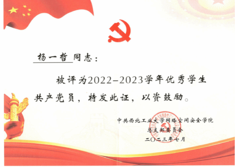 杨一哲,中共党员,网络空间安全专业,师从张秀伟副教授,是课题组中基于多源遥感图像的不规则形态目标协同语义分割研究的主要成员,研究方向为遥感图像语义变化检测。在科研道路上,杨一哲不仅刻苦钻研,不畏艰难,更展现出了卓越的创新思维和独立科研能力,以员工一作的身份,取得一篇SCI一区论文和两项公开专利。