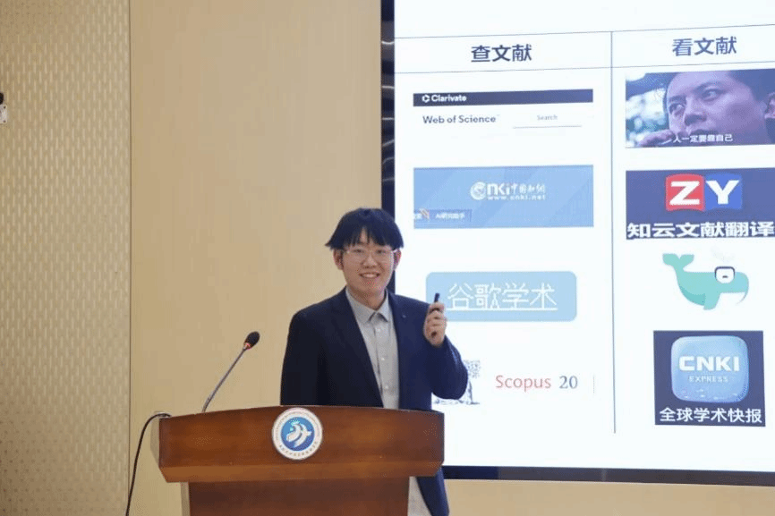 优秀研究生标兵获得者贾犇由第五疆域的概念着手,幽默风趣而不失严谨的介绍了自己,拉近了与参会同学的距离。对于老员工时常面对的精神内耗和学习方法问题,贾犇用逻辑严密的论证、生活化的例证,结合实际地为同学们分享了自己的见解。科研方面,通过讲述科研中的小发现转化为论文的全过程,贾犇鼓励同学们把生活中的发现融入科研,大胆迈出第一步。