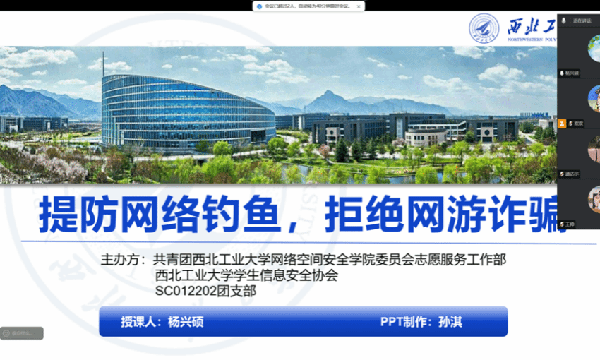 2024级本科生杨兴硕和2024级本科生马君儒等同学参与线上反诈公开课志愿服务。当今时代AI技术迅猛发展,在带给人们诸多便利的同时也同样困扰着人们的生活。AI诈骗层出不穷,手段令人防不胜防,成为一大痛点。活动过程中,杨兴硕同学作为偏远地区反诈课程线上授课人,精心做好PPT,做好教学准备,他在未来将会更积极地投入到这类有意义的活动中,马君儒作为网小安公开课直播间主讲人,引领同学们探索AI反诈的奥秘。在屏幕前,他为大家揭示了AI诈骗的阴霾如何悄然笼罩,通过实例演示,使深度伪造的概念生动鲜活。他感悟到,唯有洞悉风险,方能驾驭技术,才能共筑网络安全的长城。
