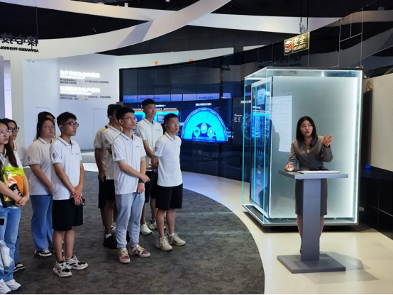 进入阿里云园区后,讲解员首先带领实践队参观了阿里云展厅,为大家讲解了阿里云的企业文化和发展历程。“梦想永在,代码成就”是阿里云十几年来奋斗的真实写照。接着,讲解员为大家讲解了阿里云提供的一系列服务、关键技术与重要成就。一项项自主研发的核心技术,是阿里云推动信息技术产业自主化的生动注脚;一件件云计算产品是阿里云走在世界前沿的有力证明;一例例解决国家重大战略需求、服务社会的案例无不体现着龙头企业的责任与担当。通过参观展厅,同学们深刻体会到了阿里云“计算,为了无法计算的价值”的核心理念,让云计算赋能产业数字化转型,实现更加广阔的价值。