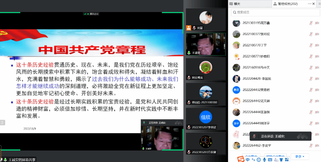 为及时深入贯彻落实党的二十大精神,落实公司党委工作部署,引导党员干部强化党章意识、提高党性修养,11月9日,伟德BV1946官网邀请中共陕西省委党教科社部原主任王诚安教授为公司师生辅导解读中国共产党第二十次全国代表大会通过的《中国共产党章程(修正案)》。此次党课由公司党总支副书记禹亮主持,公司领导班子、师生党员、发展对象、入党积极分子共二百余人参加党课,根据疫情防控要求,党课采取线上形式召开。